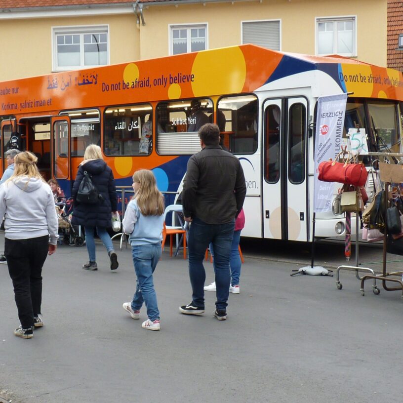 Der „Helle Markt“ in Schlüchtern ist ein Gewerbe- und Vereins-Stadtfest, das seit vielen Jahren zu den Traditionen der Stadt Schlüchtern gehört. Wir als Freie evangelische Gemeinde wollen hier Gelegenheit geben, um das Evangelium von Jesus Christus zu erklären. Der Kulturdialogbus ist dazu eine wunderbare Möglichkeit, weil wi mit Menschen aus allen Kulturen und verschiedenen Sprachen ins Gespräch kommen wollen. Die Stadt Schlüchtern ist stolz darauf, dass Menschen aus über 90 verschiedenen Nationen hier beheimatet sind.
